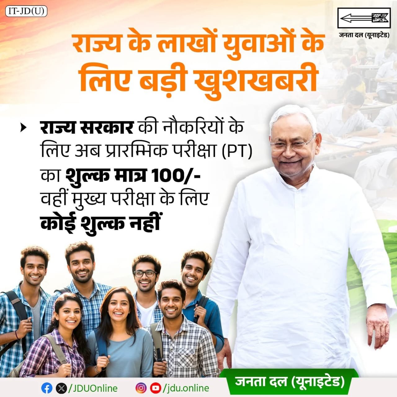 राज्य के युवाओं को सरकारी नौकरी तथा रोजगार के अधिक अवसर प्रदान करने हेतु एवं इन लोगों का भविष्य सुरक्षित करने हेतु बिहार राज्य के सरकार के द्वारा बहुत सारा ठोस कदम उठा लिया गया है. बिहार सरकार के द्वारा युवाओं के हित में एक निर्णय ले लिया गया है. और आगे लिखा है गया है कि मुझे बताते हुए खुशी महसूस हो रहा है कि राज स्तरीय सरकारी नौकरी हेतु सभी आयोगो ( बिहार लोक सेवा आयोग / बिहार कर्मचारी चयन आयोग / बिहार तकनीकी सेवा आयोग / बिहार पुलिस और सेवा आयोग केंद्रीय सिपाही चयन परिषद इत्यादि ) के द्वारा आयोजित होने वाला प्रारंभिक परीक्षा प्रतियोगी परीक्षाओं के शुल्क में एकरूपता लाते हुए अभ्यर्थियों को परीक्षा शुल्क में बड़ी छूट प्रदान करने का फैसला लिया गया है